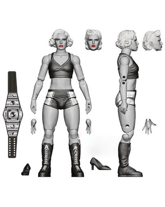 Zubehör: Womens World Championship Gürtel, Entrance Mantel, ein Paar austauschbare Schuhe, zwei austauschbare Köpfe und drei austauschbare Hände.