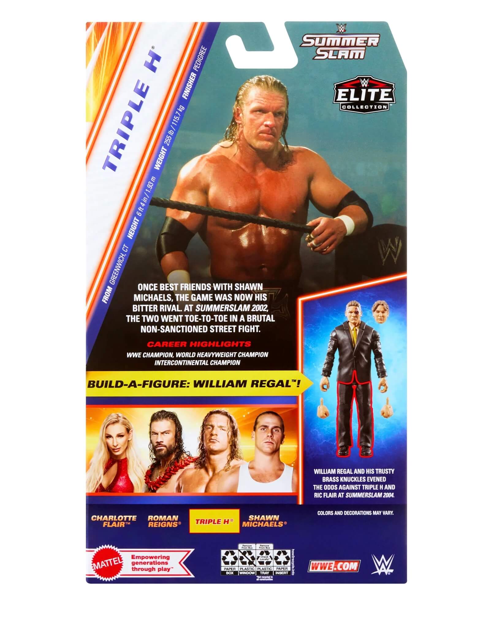 Hochdetaillierte Triple H Actionfigur im Outfit von WWE SummerSlam im Jahr 2002.