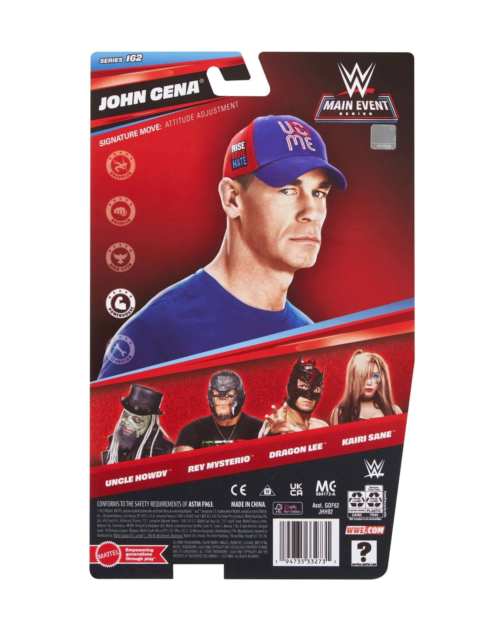 Hol dir den ultimativen WWE-Klassiker John Cena als WWE Main Event Serie 162 Actionfigur! Diese Figur zeigt den legendären Superstar mit authentischem Ring-Outfit, TrueFX-Detail und mehreren Gelenkpunkten — ideal für Sammler, Fans und actionreiche Displays.